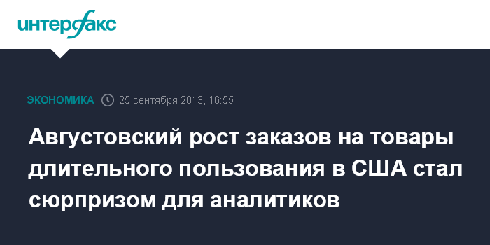 Августовский рост заказов на товары длительного пользования в США стал сюрпризом для аналитиков