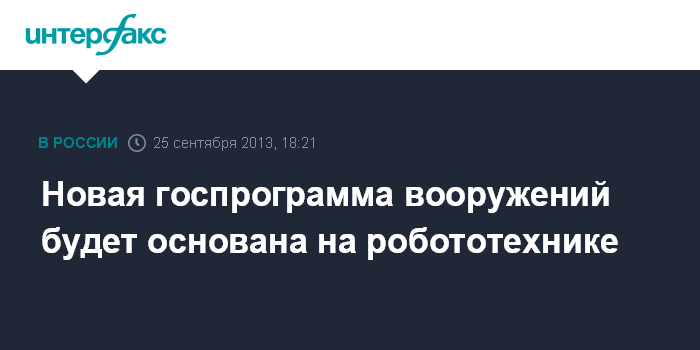 "Смысл будущей программы - это создание робототехники самой разной - воздушной, наземной, подводной и прочей. Второе - это создание оружия на новых физических принципах", - сказал Рогозин, отвечая на вопрос "Интерфакса", чем будет отличаться новая госпрограмма вооружений.
