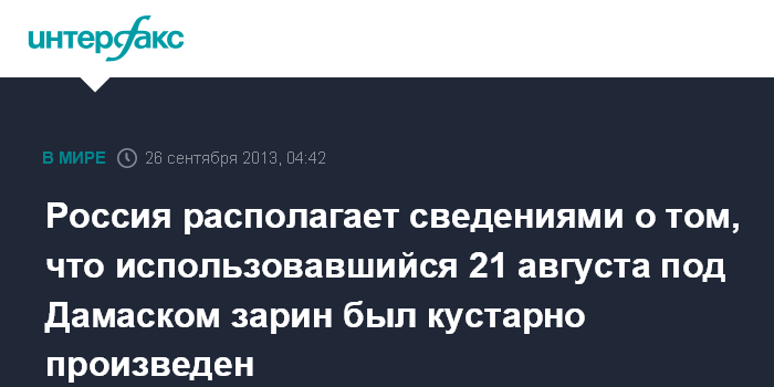 Россия располагает сведениями о том, что использовавшийся 21 августа под Дамаском зарин был кустарно произведен