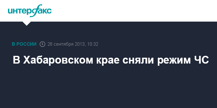 Москва. 26 сентября. INTERFAX.RU - Глава МЧС России Владимир Пучков заявил о снятии режима чрезвычайной ситуации в связи с паводками в Хабаровском крае.