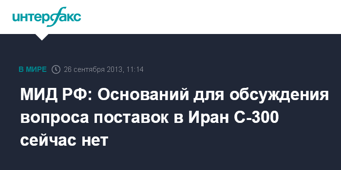 МИД РФ: Оснований для обсуждения вопроса поставок в Иран С-300 сейчас нет