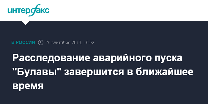 Нижний Тагил. 26 сентября. INTERFAX.RU - Расследование сентябрьского аварийного пуска стратегической ракеты морского базирования "Булава" завершается, Минобороны РФ надеется, что причина аварии носит разовый характер, заявил "Интерфаксу-АВН" в четверг заместитель министра обороны Юрий Борисов.