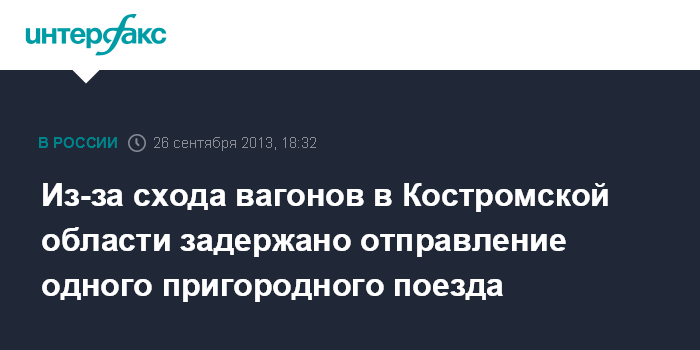 Из-за схода вагонов в Костромской области задержано отправление одного пригородного поезда
