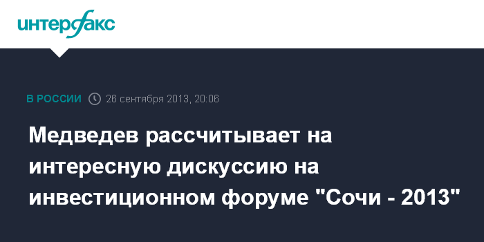 Медведев рассчитывает на интересную дискуссию на инвестиционном форуме "Сочи - 2013"