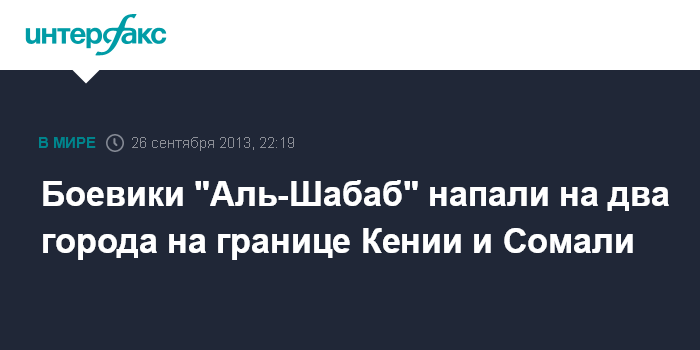 Найроби. 26 сентября. INTERFAX.RU - По меньшей мере три человека погибли в результате нападения боевиков из радикальной исламистской группировки "Аль-Шабаб" на два города на границе Кении и Сомали, сообщает в четверг агентство АР.