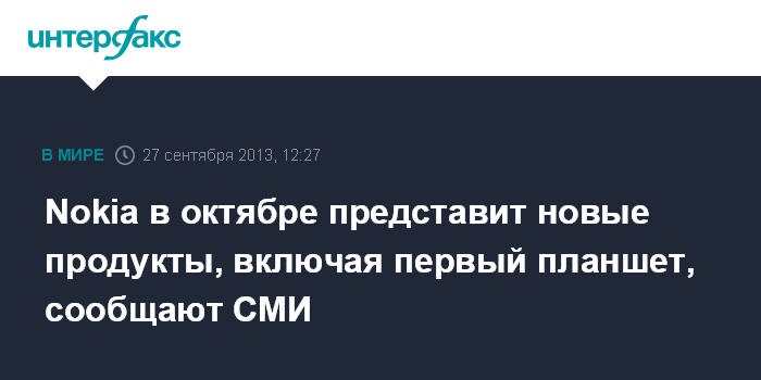 Nokia в октябре представит новые продукты, включая первый планшет, сообщают СМИ