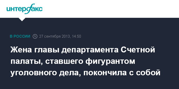 Жена главы департамента Счетной палаты, ставшего фигурантом уголовного дела, покончила с собой