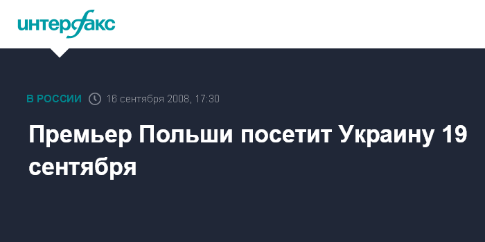 Москва. 16 сентября. INTERFAX.RU - Премьер-министр Польши Дональд Туск посетит Украину с рабочим визитом 19 сентября.
