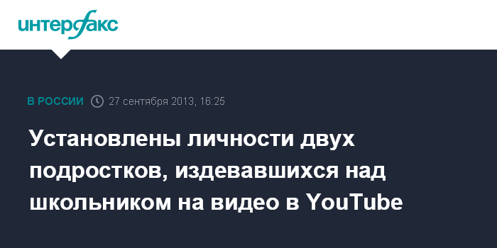 Санкт-Петербург. 27 сентября. INTERFAX.RU - В Санкт-Петербурге установлены личности двоих подростков с выложенного в Интернете видео с издевательствами над школьником, сообщили "Интерфаксу" в пресс-службе городской прокуратуры в пятницу.