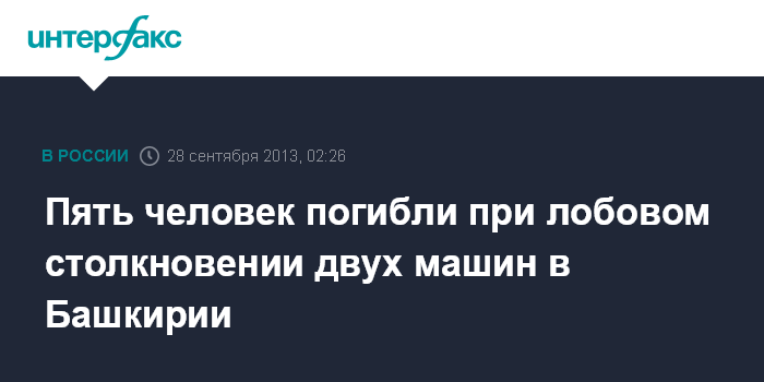 Уфа. 28 сентября. INTERFAX.RU - Автоавария в Мелеузовском районе Башкирии унесла жизнь пяти человек, сообщили агентству "Интерфакс" в пресс-службе республиканского МВД.