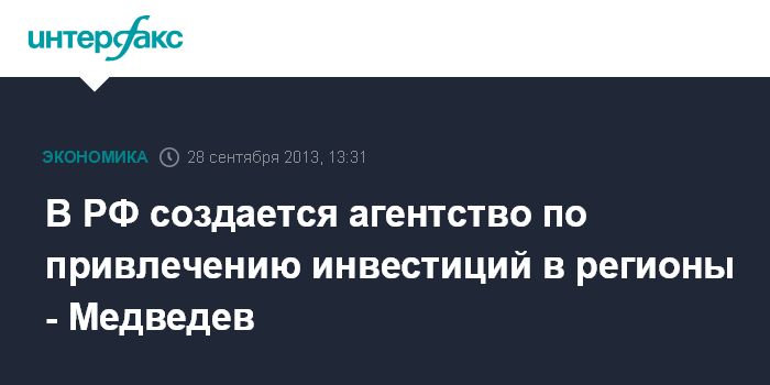 В РФ создается агентство по привлечению инвестиций в регионы - Медведев