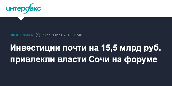 Инвестиции почти на 15,5 млрд руб. привлекли власти Сочи на форуме