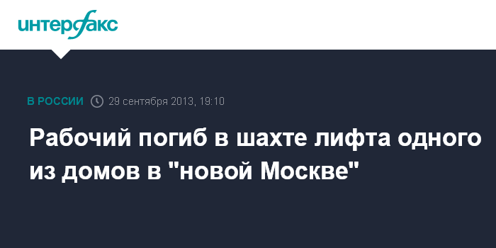 Москва. 20 сентября. INTERFAX.RU - Ремонтника насмерть придавило лифтом в одном из жилых домов в поселке Киевский на территории "новой Москвы", сообщил "Интерфаксу" источник в правоохранительных органах. По его данным, лифтер проводил ремонтные работы в шахте на втором этаже здания, а затем по неизвестной пока причине конструкция рухнула и придавила мужчину.