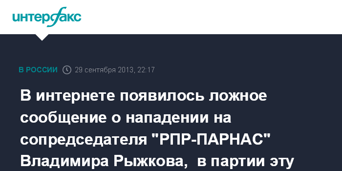 В интернете появилось ложное сообщение о нападении на сопредседателя "РПР-ПАРНАС" Владимира Рыжкова, в партии эту информацию опровергли