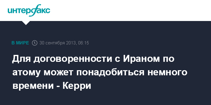 Вашингтон. 30 сентября. ИНТЕРФАКС - Для урегулирования ядерной проблемы Ирана может понадобиться даже меньше времени, чем говорил иранский президент Хасан Рухани, заявил госсекретарь США Джон Керри.