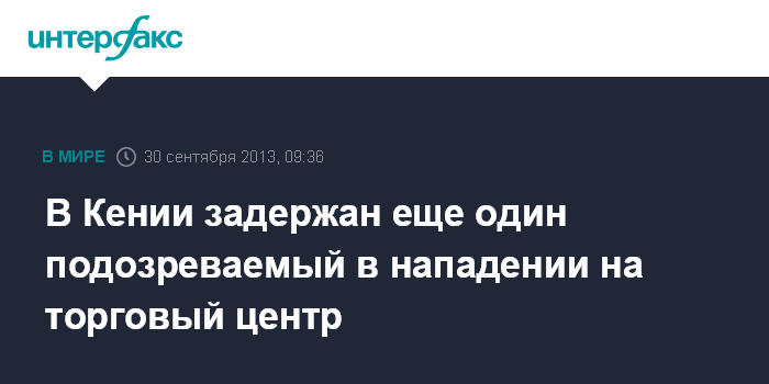 Найроби. 30 сентября. INTERFAX.RU - Кенийские власти задержали очередного подозреваемого в причастности к атаке на торговый центр в Найроби, сообщают в понедельник местные СМИ.