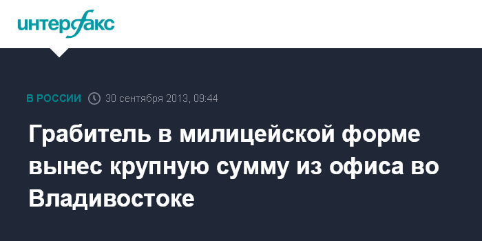 Грабитель в милицейской форме вынес крупную сумму из офиса во Владивостоке