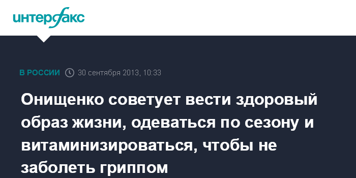 Онищенко советует вести здоровый образ жизни, одеваться по сезону и витаминизироваться, чтобы не заболеть гриппом