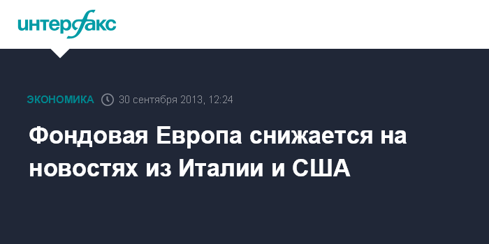 30 сентября. FINMARKET.RU - Европейские фондовые индексы падают в понедельник на фоне политического кризиса в Италии и негативных новостей из США, сообщает агентство Bloomberg. Кроме того, китайский производственный PMI за сентябрь был пересмотрен в худшую сторону.