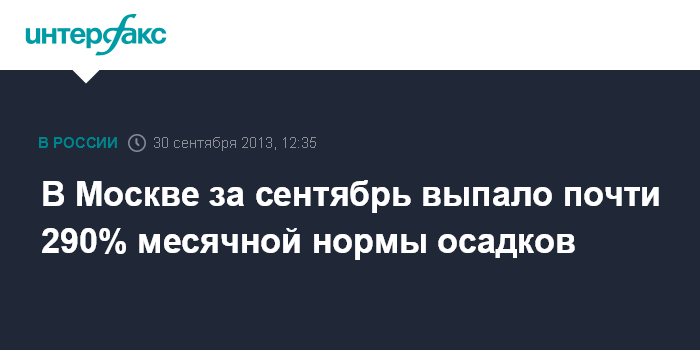 Ранее "Интерфакс" сообщал, что нынешний сентябрь в Москве побил рекорд по осадкам за всю более чем 130-летнюю историю метеонаблюдений.
