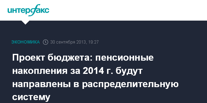Проект бюджета: пенсионные накопления за 2014 г. будут направлены в распределительную систему