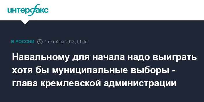 Навальному для начала надо выиграть хотя бы муниципальные выборы - глава кремлевской администрации