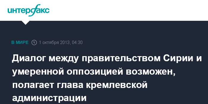 Диалог между правительством Сирии и умеренной оппозицией возможен, полагает глава кремлевской администрации