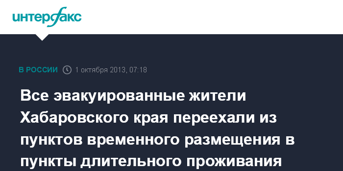 Все эвакуированные жители Хабаровского края переехали из пунктов временного размещения в пункты длительного проживания