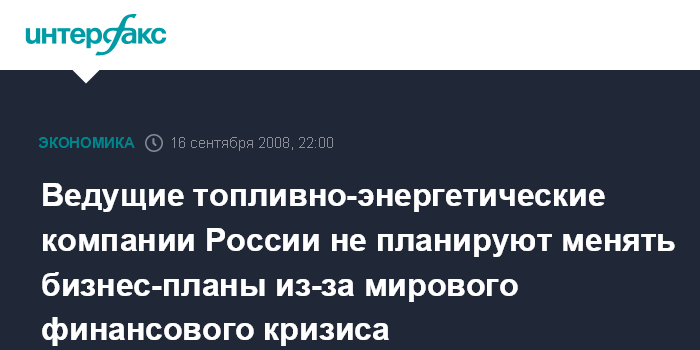 Ведущие топливно-энергетические компании России не планируют менять бизнес-планы из-за мирового финансового кризиса