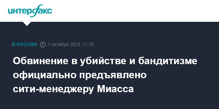 Обвинение в убийстве и бандитизме официально предъявлено сити-менеджеру Миасса