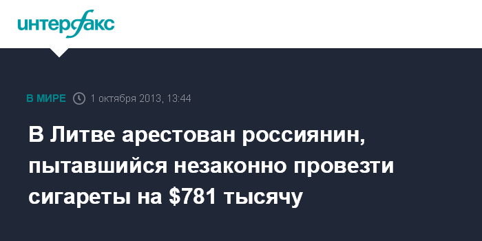 Вильнюс. 1 октября. INTERFAX.RU - Таможенники Кибартай в Литве задержали российский грузовой автомобиль с контрафактными сигаретами стоимостью 2,2 млн литов (более $781 тысячи), которые были спрятаны в грузе с шоколадом.