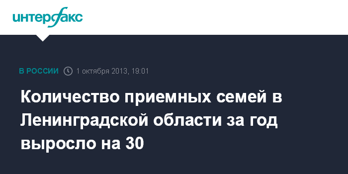 Санкт-Петербург. 1 октября. INTERFAX.RU - Ленинградская область занимает второе место на северо-западе по количеству детей, оставшихся без попечения родителей и переданных на воспитание в семью.