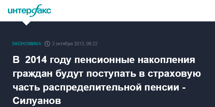 В 2014 году пенсионные накопления граждан будут поступать в страховую часть распределительной пенсии - Силуанов