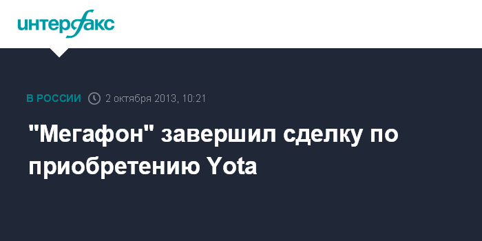 Москва. 2 октября. INTERFAX.RU - ОАО "Мегафон" завершило сделку по приобретению 100% ООО "Скартел" и 100% ООО "Йота" у своего контролирующего акционера - холдинга Garsdale.