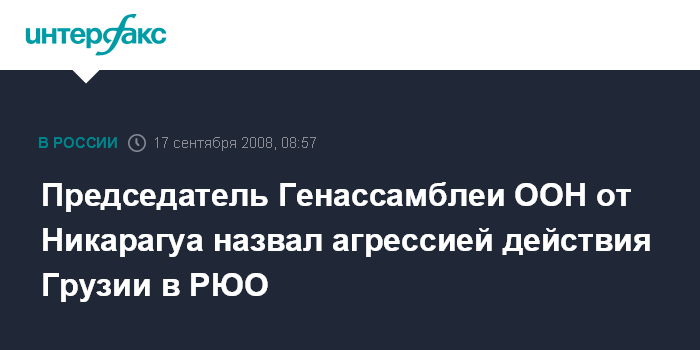 Председатель Генассамблеи ООН от Никарагуа назвал агрессией действия Грузии в РЮО