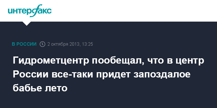 Москва. 2 октября. INTERFAX.RU - К выходным в центральной части России заметно потеплеет. Это можно назвать приходом запоздалого бабьего лета, сообщил в среду "Интерфаксу" директор Гидрометцентра России Роман Вильфанд.
