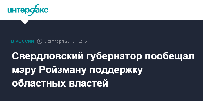 Свердловский губернатор пообещал мэру Ройзману поддержку областных властей