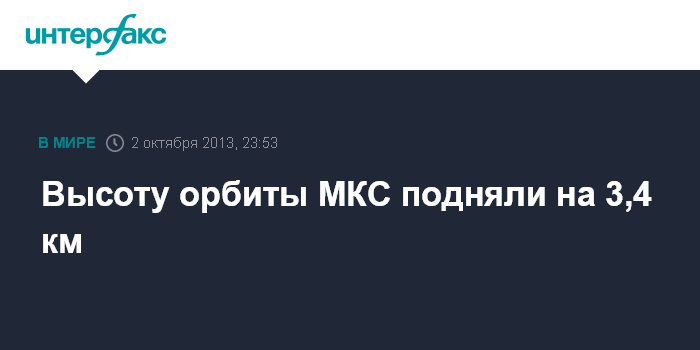 Москва. 2 октября. INTERFAX.RU - Международная космическая станция (МКС) увеличила высоту орбиты на 3,4 км, сообщили "Интерфаксу" в представительстве Европейского космического агентства (ЕКА) в России.