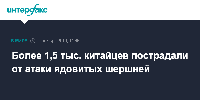 Пекин. 3 октября. INTERFAX.RU - По меньшей мере 41 человек погиб и 1675 получили травмы от укусов агрессивных шершней в провинции Шэньси в Китае за последние три месяца, сообщают в четверг местные власти.