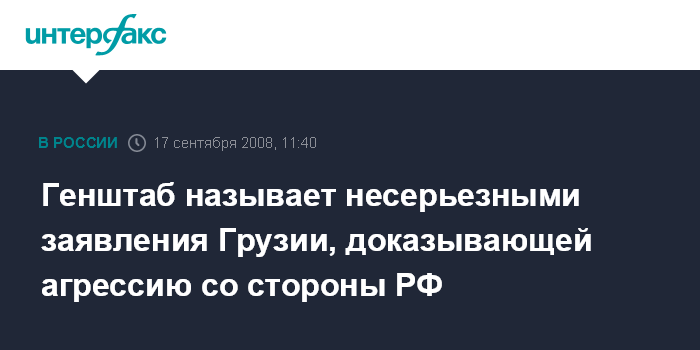 Москва. 17 сентября. INTERFAX.RU - В руководстве Генштаба РФ считают неубедительными доказательства ввода российских войск в Южную Осетию до начала боевых действий в регионе, представленные грузинской стороной.