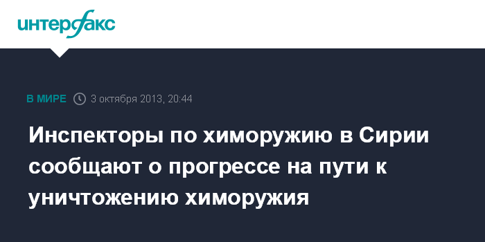 Инспекторы по химоружию в Сирии сообщают о прогрессе на пути к уничтожению химоружия