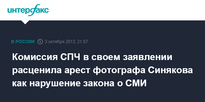 Комиссия СПЧ в своем заявлении расценила арест фотографа Синякова как нарушение закона о СМИ