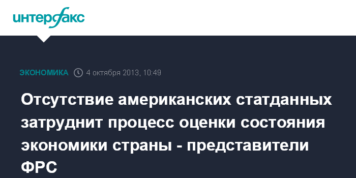 Отсутствие американских статданных затруднит процесс оценки состояния экономики страны - представители ФРС