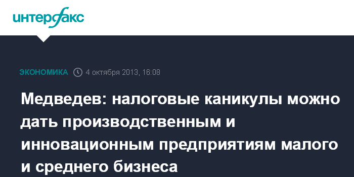 Медведев: налоговые каникулы можно дать производственным и инновационным предприятиям малого и среднего бизнеса