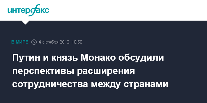 В целях улучшения сотрудничества президент РФ и князь Монако, согласно документу, поручили МИДу России и департаменту внешних сношений княжества установить порядок проведения регулярных консультаций.