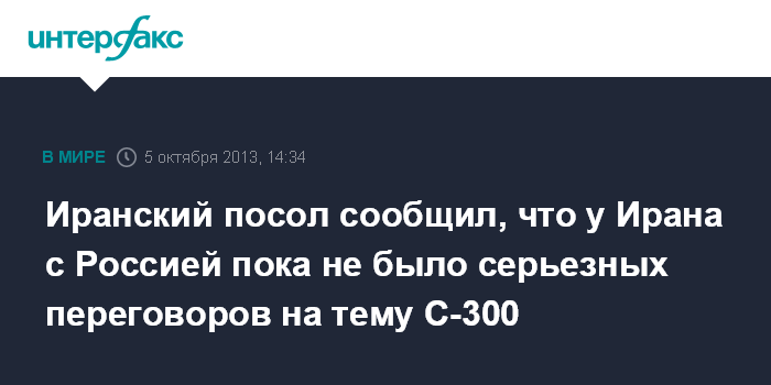 Иранский посол сообщил, что у Ирана с Россией пока не было серьезных переговоров на тему С-300
