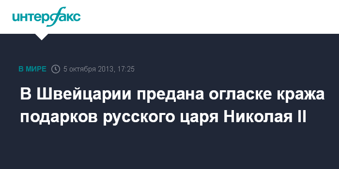 В Швейцарии предана огласке кража подарков русского царя Николая II