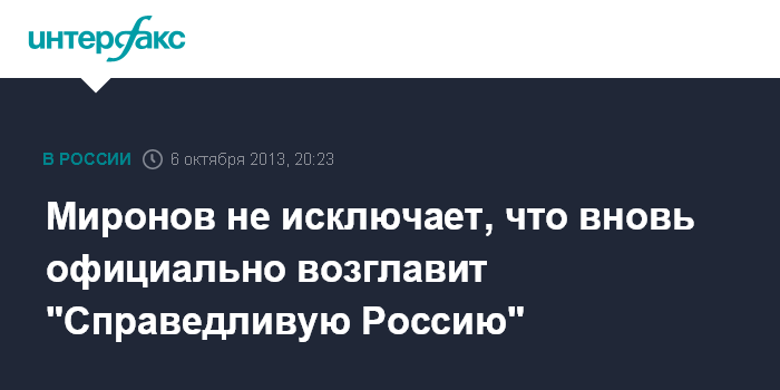 Москва. 6 октября. ИНТЕРФАКС - Лидер "Справедливая Россия" Сергей Миронов заявил, что готов снова стать председателем партии.
