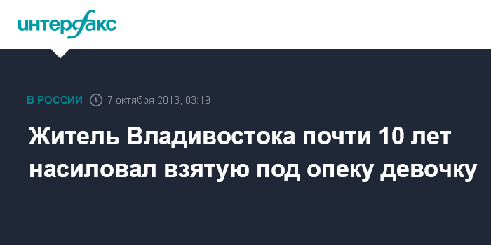 Владивосток. 7 октября. ИНТЕРФАКС - ДАЛЬНИЙ ВОСТОК - Коллегия присяжных заседателей признала виновным жителя Владивостока в надругательстве над взятой под опеку девочкой.