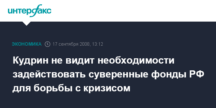 Москва. 17 сентября. INTERFAX.RU - Вице-премьер, министр финансов РФ Алексей Кудрин не видит необходимости использовать Резервный фонд и Фонд национального благосостояния для борьбы с кризисом.